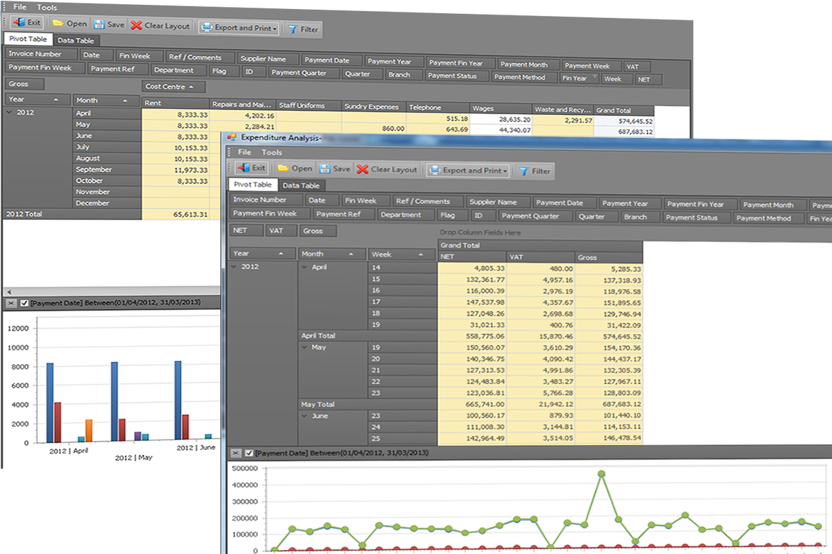 Slice and dice your data to get the information you need - All with a few clicks of the mouse. Our much praised and invaluable reporting engine will give you a clear view of your business in seconds