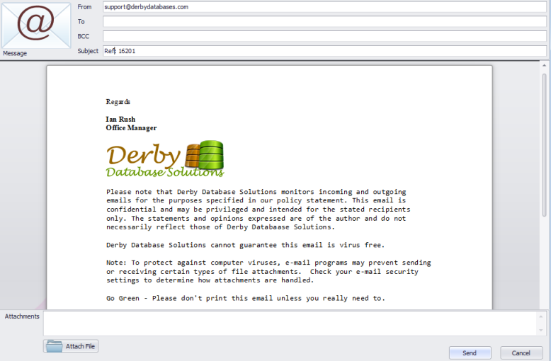 Generated documents can be saved as PDF, allowing you to quickly email from within cManager