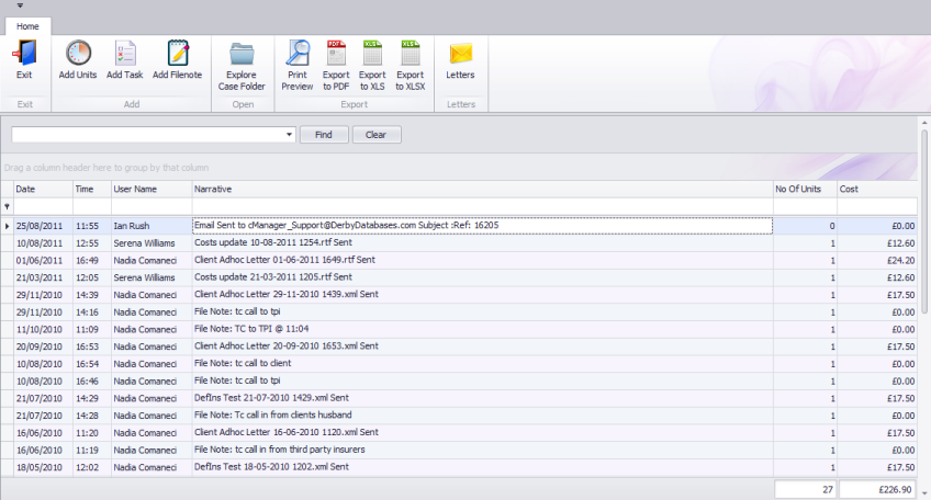 Any action performed against a case is recorded for future reference. Want to view a document that was generated? No problem - just click the history entry and cManager will open it. No need to go through the windows folders looking for what you want.